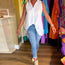 Genießen Sie die wohlige Wärme des Abends, während Sie das ärmellose Oberteil mit Rüschen und Revers tragen. Dieses Kleidungsstück vereint Eleganz und Leichtigkeit und ist eine Hommage an die märchenhafte Ruhe der Wüstenoasen, um Ihnen eine unvergessliche Sommeratmosphäre zu bieten.